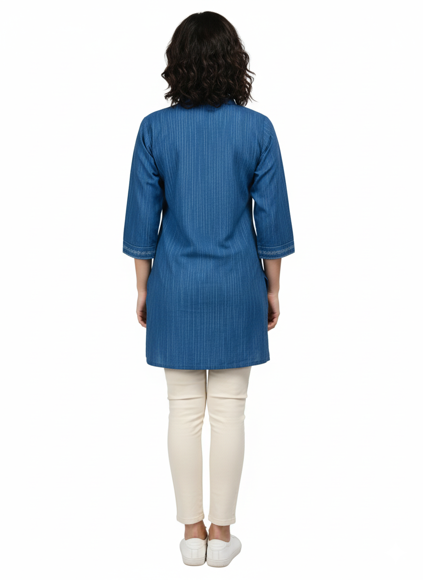 Blue Cotton Short Kurta for Women