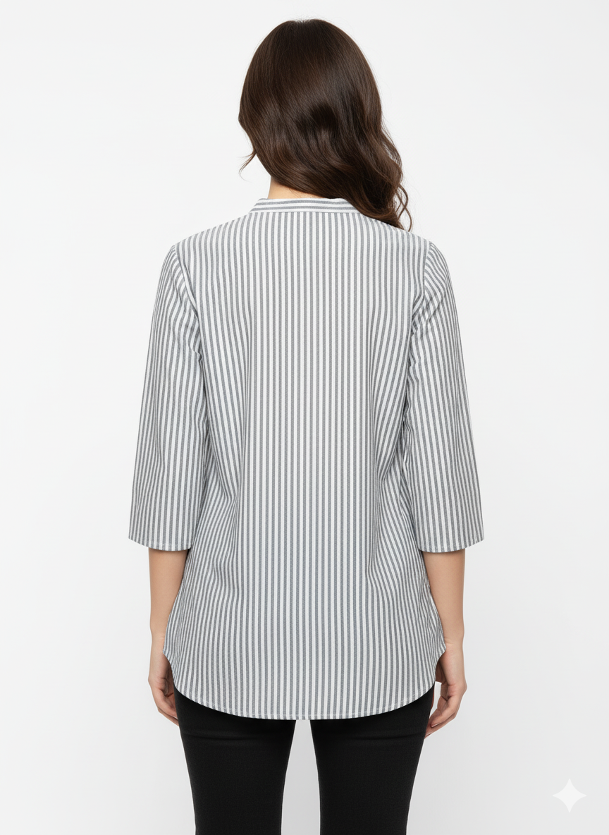 Women’s Striped Cotton Short Kurta – Gray