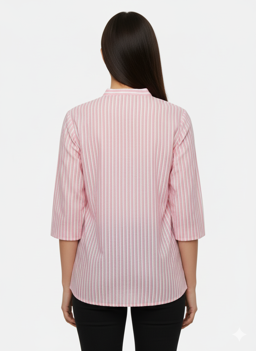 Women’s Striped Cotton Short Kurta – Pink