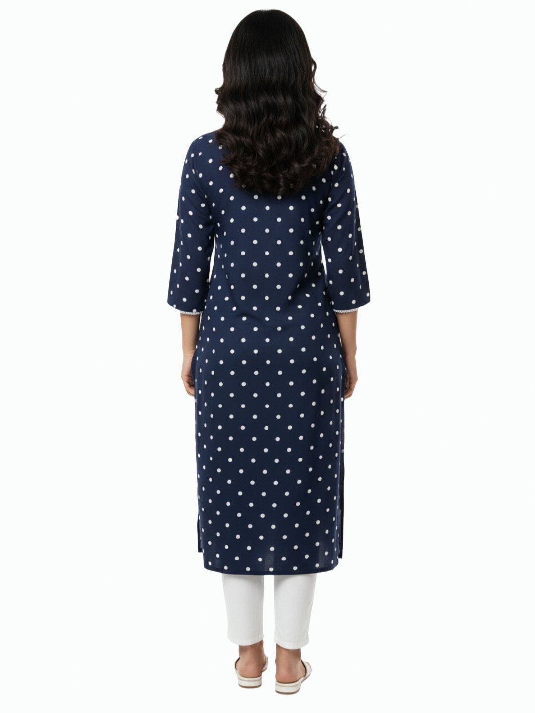 Women’s Navy Blue Polka Dot Straight Kurta