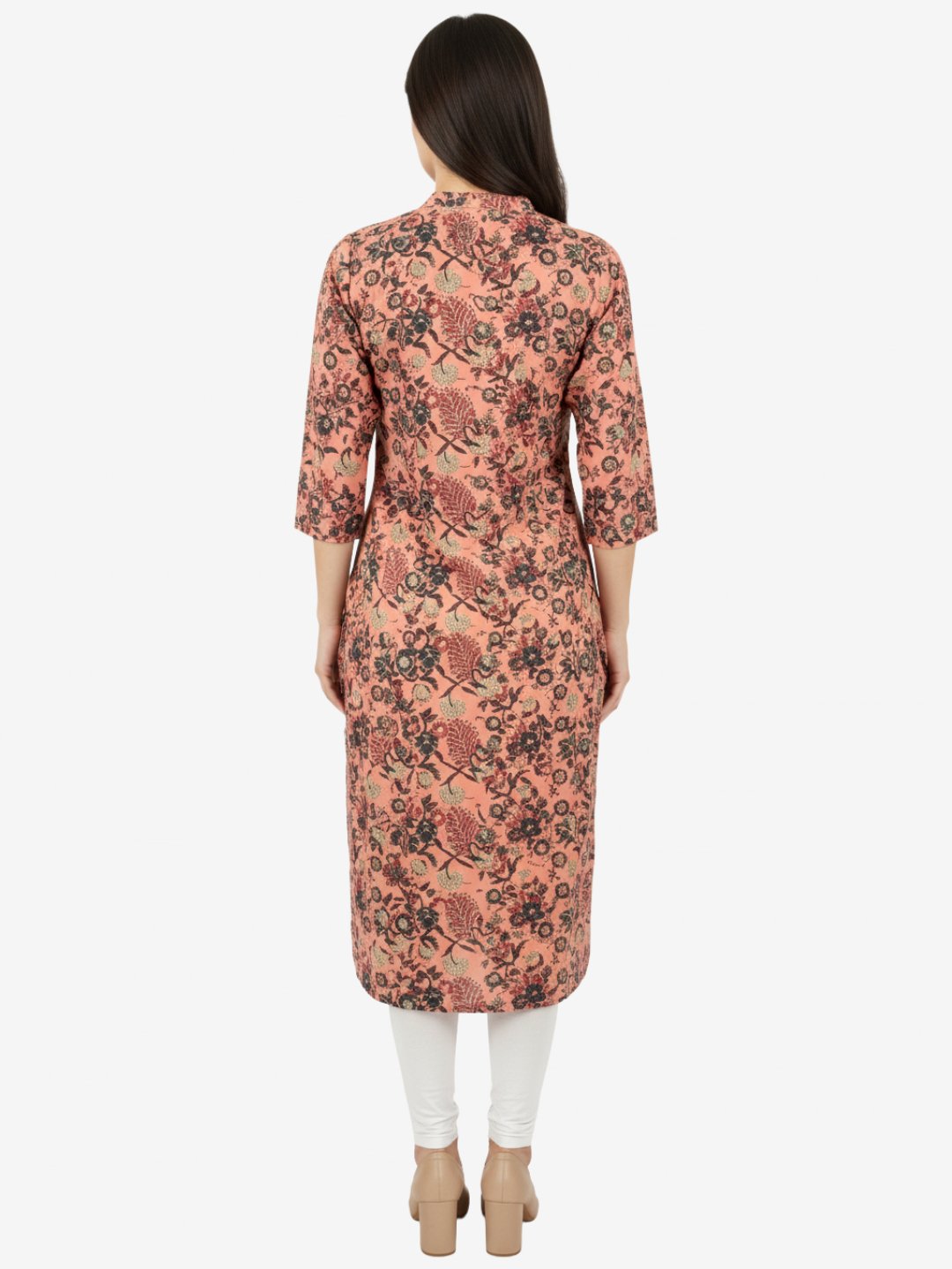 ₹999.00Original price was: ₹999.00.₹500.00Current price is: ₹500.00.Select optionsProduct Pink Cotton Kurta with Jaipuri Floral Print Fabric Soft, breathable cotton Color Pink with navy and beige floral Jaipuri print Design Mandarin collar, partial button placket, three-quarter sleeves Fit Straight silhouette Use Casual, office, festive occasions -