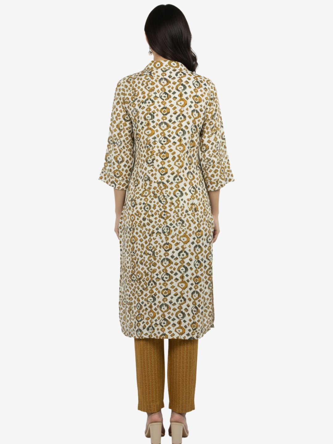 ₹1,499.00Original price was: ₹1,499.00.₹700.00Current price is: ₹700.00.Select optionsCare Instructions Machine wash cold, gentle cycle. Dry in shade. Fit Type Regular Fit Neck Collared V-neck Fabric Cotton Blend Sleeve 3/4th Sleeves Pattern/Style Elegant stripes with gold detailing Type Straight Length Mid-Calf Length Occasion Casual, Office & Ethnic Wear Package Contains 1 Kurta + 1 Pant Set -