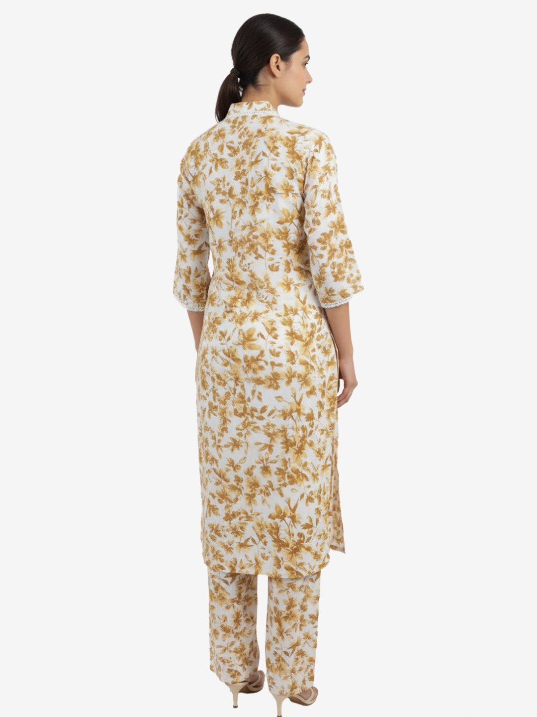 Mustard Floral Printed White Rayon Kurta Pant Set for Women