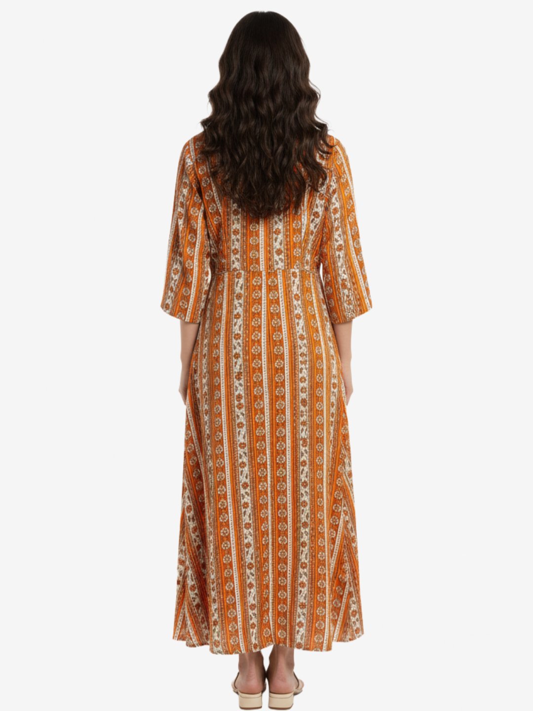₹1,499.00Original price was: ₹1,499.00.₹700.00Current price is: ₹700.00.Select optionsCare Instructions Machine wash cold, gentle cycle. Dry in shade Fit Type Regular Fit Neck Collared Mandarin Neck Fabric Cotton Sleeve 3/4 Sleeve Pattern/Style Striped Floral Printed Type A-Line Kurta Length Ankle Length Occasion Casual, Office & Ethnic Wear Package Contain 1 Maxi Kurta -