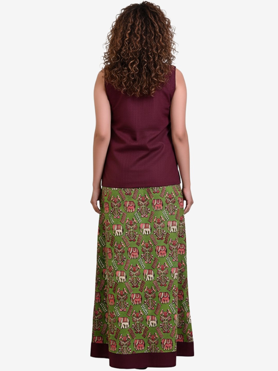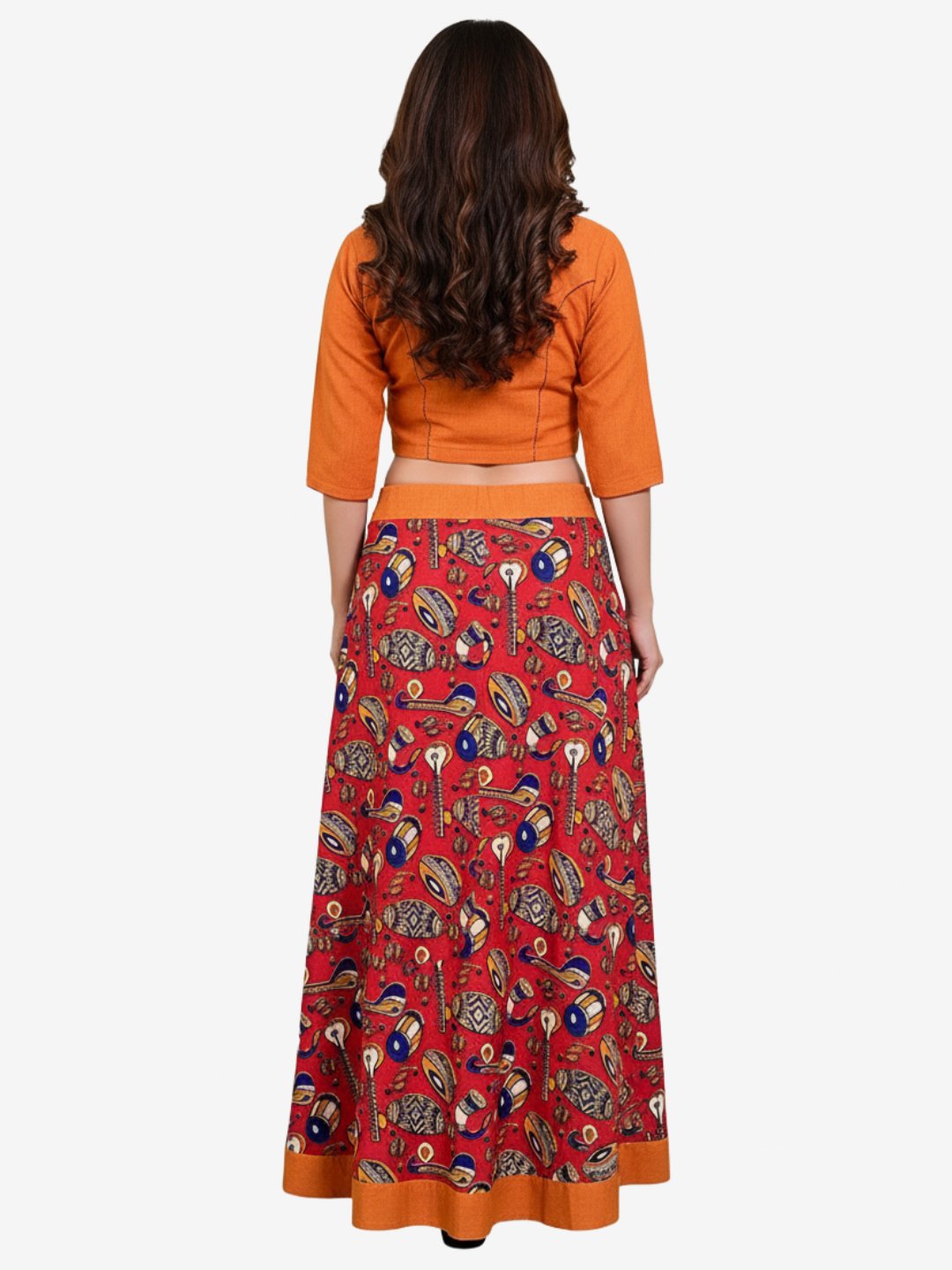 ₹2,499.00Original price was: ₹2,499.00.₹999.00Current price is: ₹999.00.Select optionsMaterial Pure Cotton Sleeve Length 3/4 Sleeve Neck Round Neck Fit Regular Fit Pattern Kalamkari Block Print Care Instruction Hand Wash Occasion Casual Pack Of 1 Top 1 Skirt -