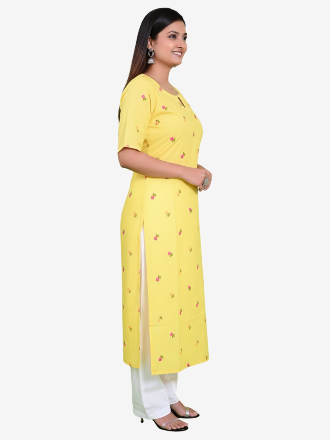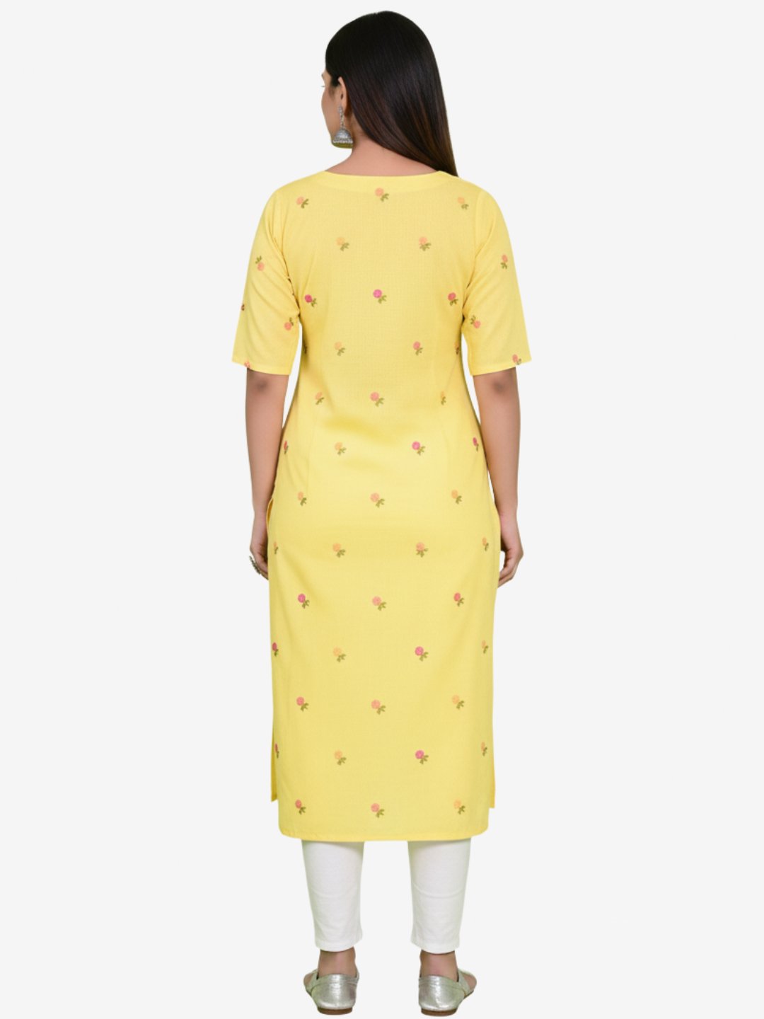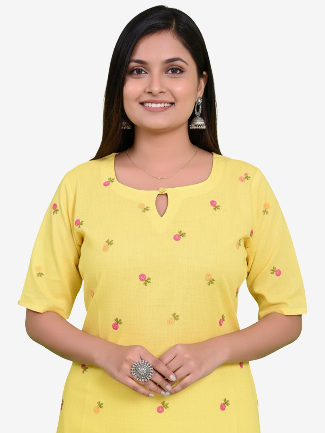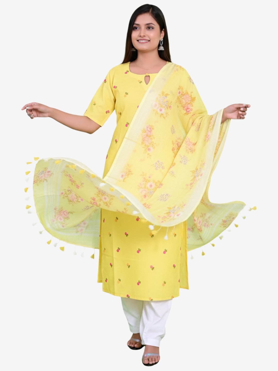 Cotton Embordered Yellow Kurta with Digital Printed Linen Dupatta.