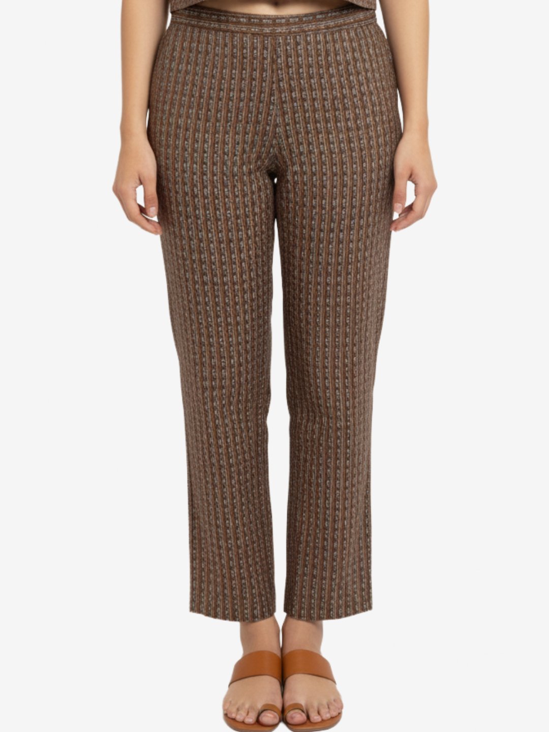 | Bottom | Matching straight-fit pants with striped pattern |