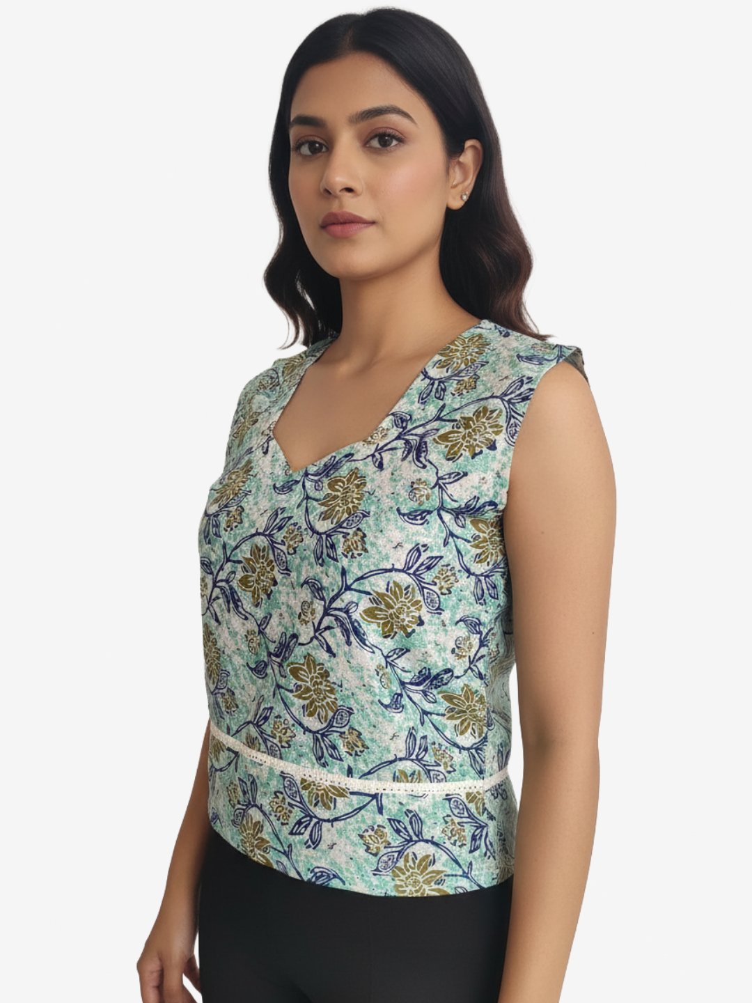 This sleeveless rayon top brings an easy blend of comfort and charm to your everyday wardrobe. Crafted from soft, breathable rayon fabric, it drapes beautifully while keeping you cool and comfortable throughout the day.