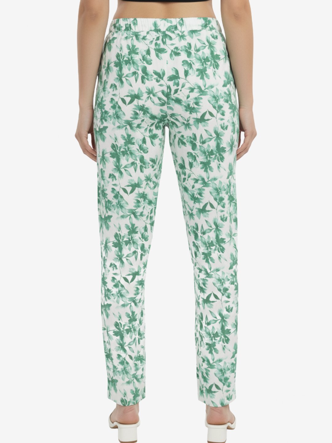 Green Floral Printed White Rayon Kurta Pant Set for Women