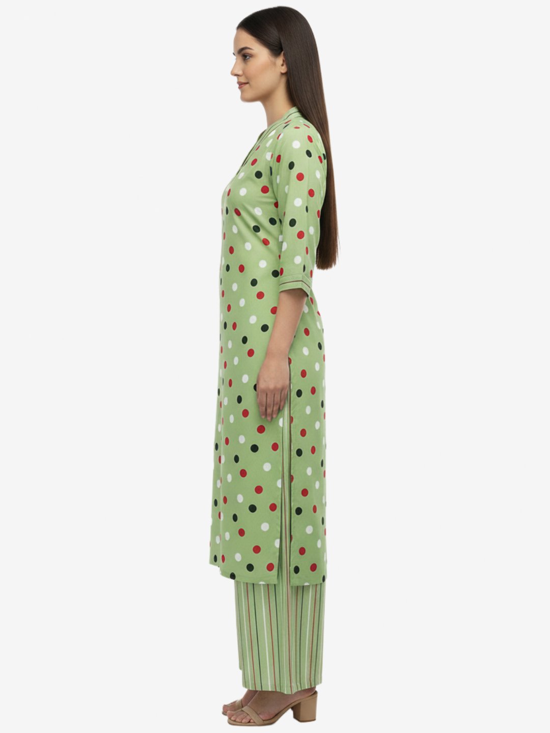 Green Rayon Polka Dot Print Kurta & Palazzo Set