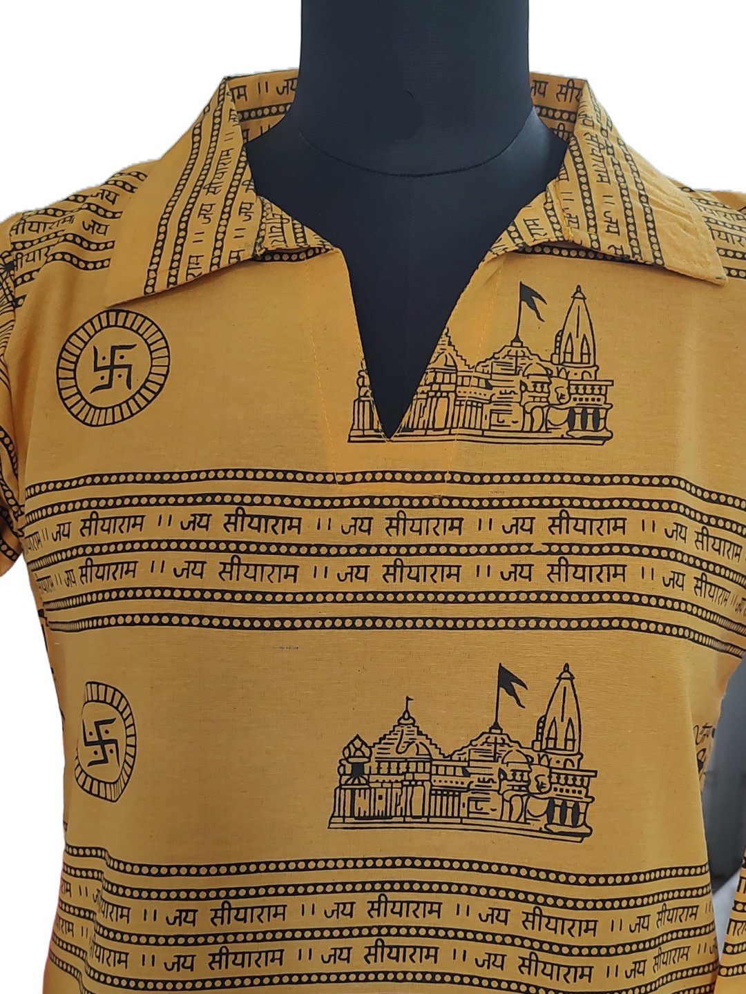 Jai Shree Ram Printed Unisex Yellow Kurta