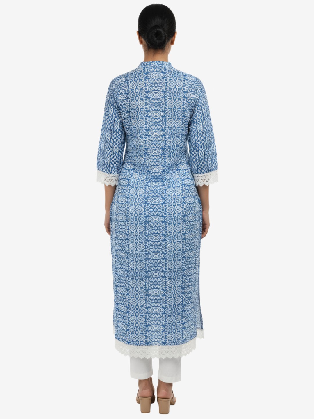 Blue Jaipuri Print Cotton Kurta with Lace