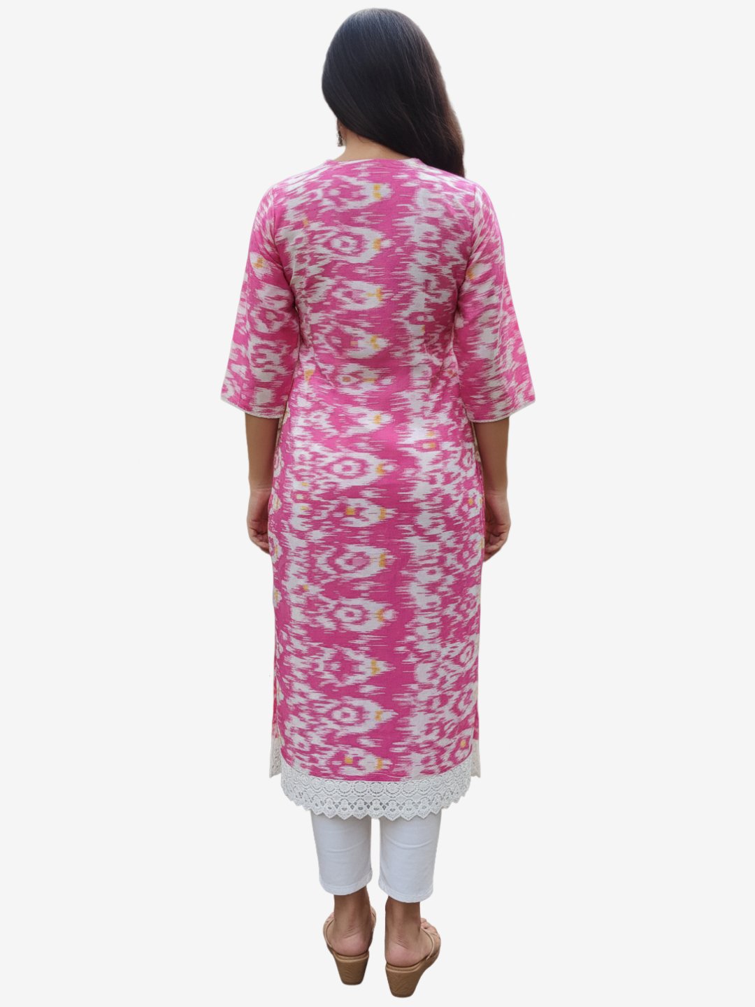 Pink Jaipuri Print Cotton Kurta with Lace Hem