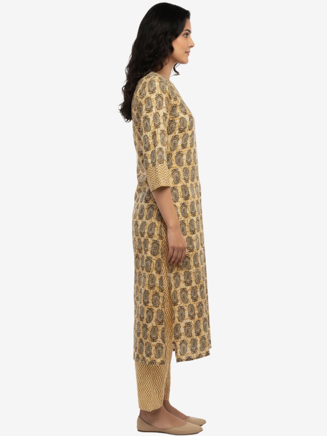 Print/Pattern All-over paisley print on kurta, chevron print on pants and sleeve cuffs