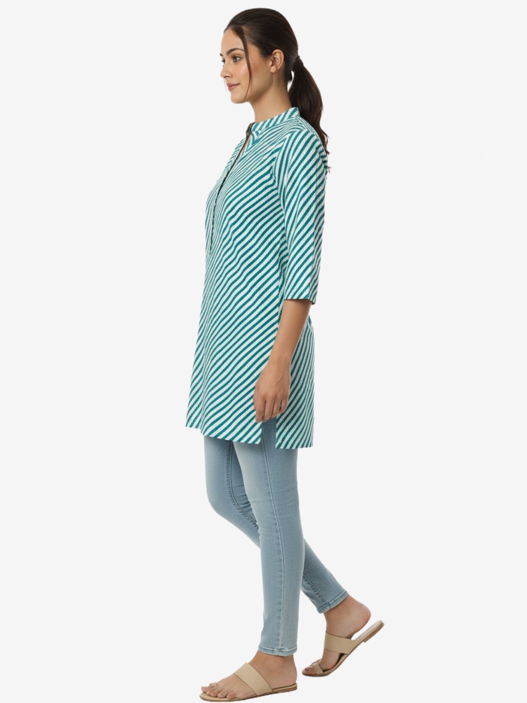 Teal Striped Cotton Short Kurta – Smart Casual Everyday Wear
