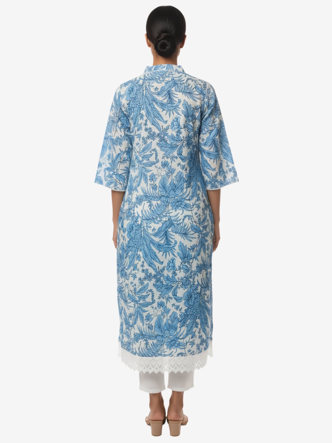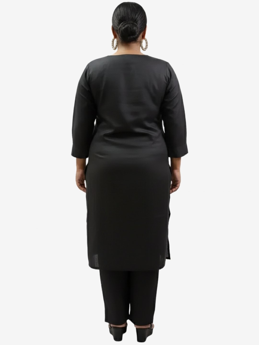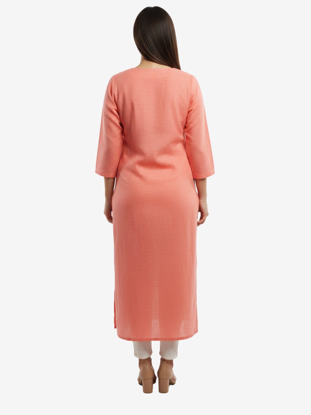 | Title | Olive Green Embroidered Straight Kurti with Floral Detailing and 3/4 Sleeves |