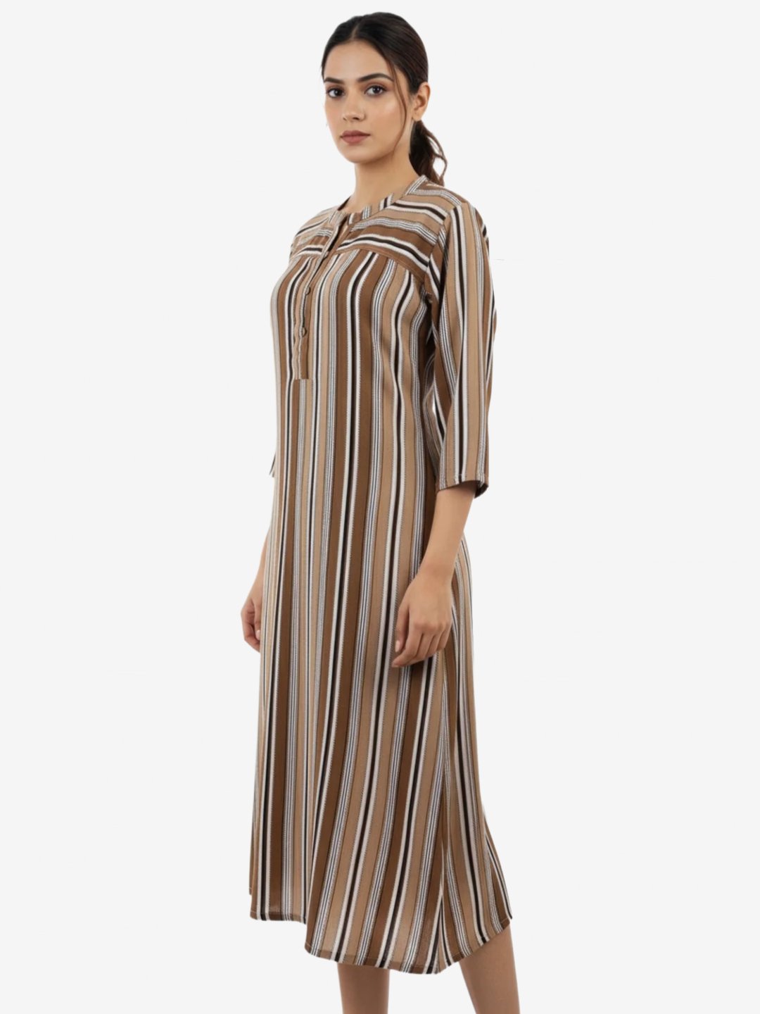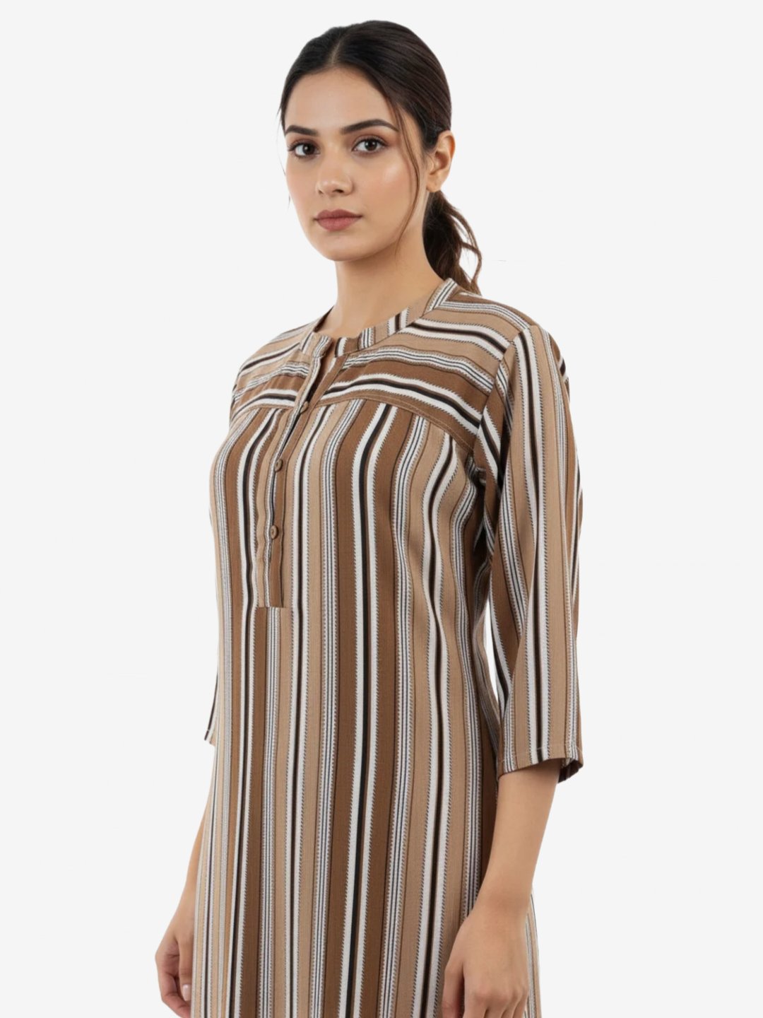 Elevate your ethnic wardrobe with this elegant Women’s Rayon Straight Printed Brown Kurta. Crafted from soft and breathable rayon fabric, this kurta features a graceful straight cut that flatters all body types. The earthy brown hue combined with delicate prints adds a touch of tradition with modern simplicity.
