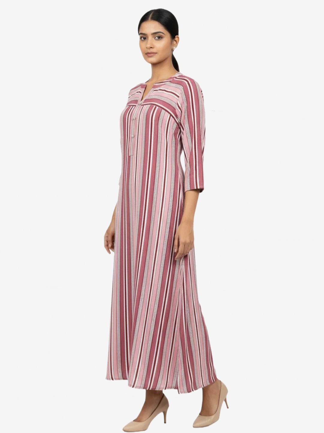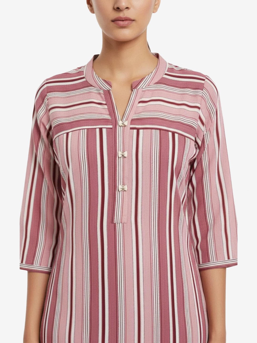 Add a touch of timeless elegance to your ethnic collection with this Women’s Rayon Straight Maroon Kurta. Crafted from soft and flowy rayon fabric, this kurta features a rich maroon hue that exudes warmth and sophistication. The straight-cut silhouette offers a flattering fit, while the minimal yet stylish print adds a refined traditional charm.