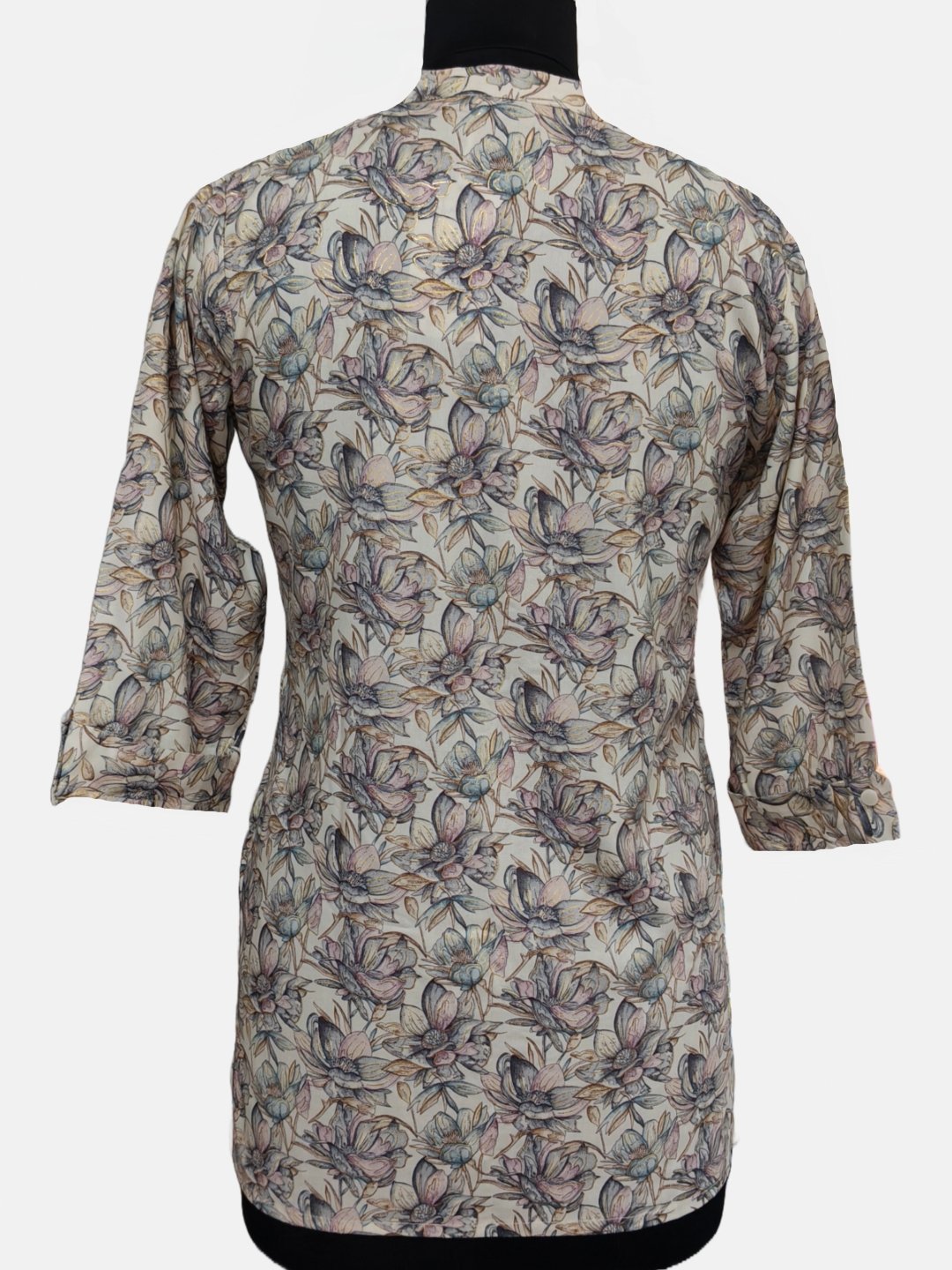 Step into effortless style with this Floral Grey Short Kurta, featuring a refreshing teal and beige floral print. Designed with a mandarin collar and 3/4th sleeves, this lightweight rayon kurta is perfect for casual days and festive gatherings alike. Pair it with jeans, leggings, or palazzos for a versatile ethnic look that keeps you cool and stylish.