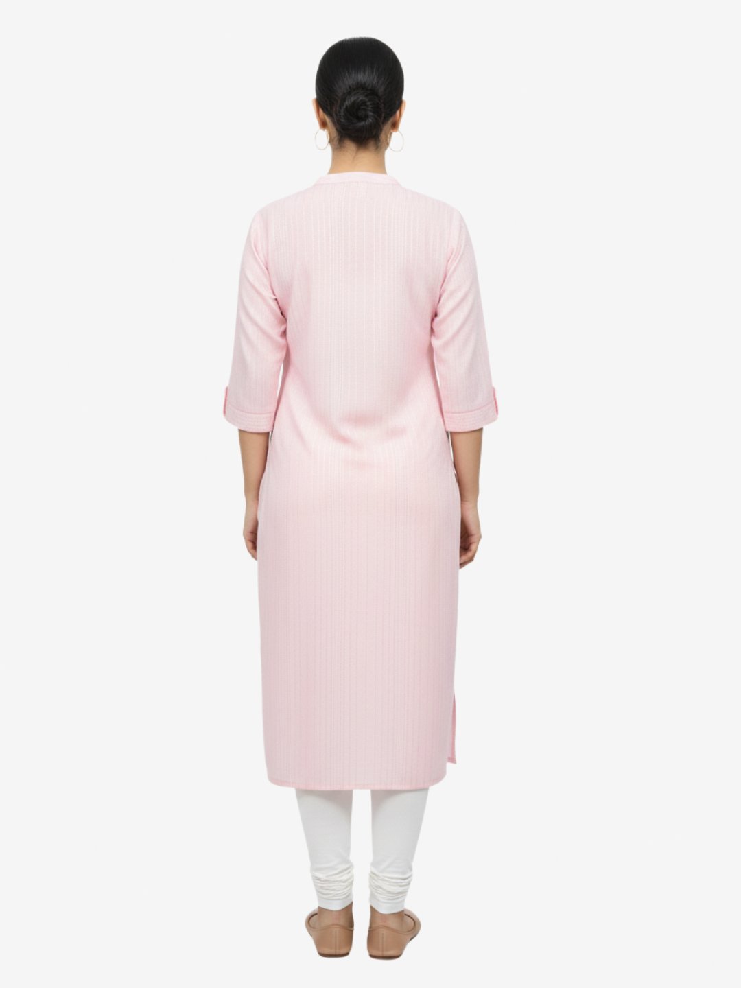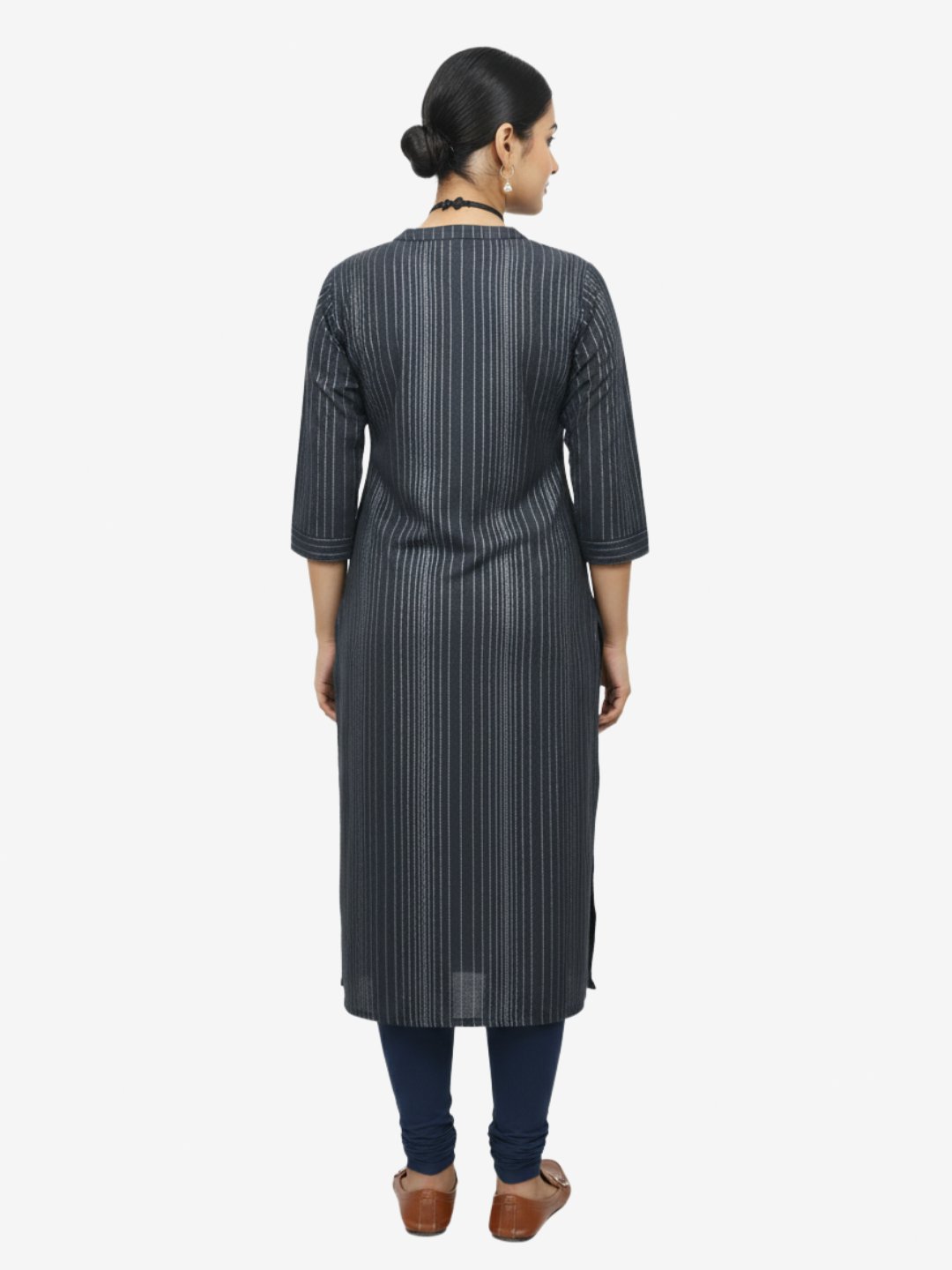 | Title | Olive Green Embroidered Straight Kurti with Floral Detailing and 3/4 Sleeves |