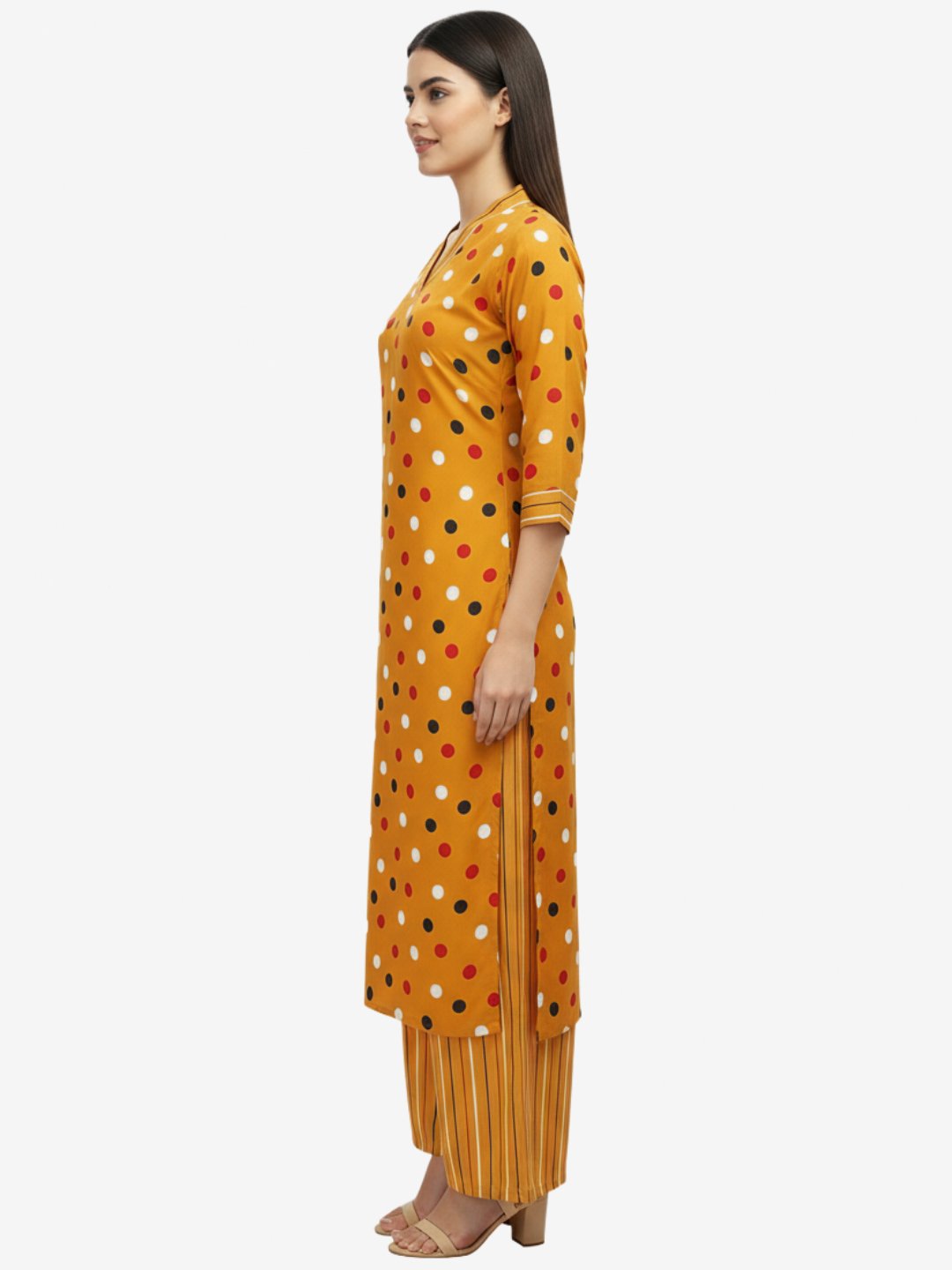Yellow Rayon Polka Dot Print Kurta & Palazzo Set