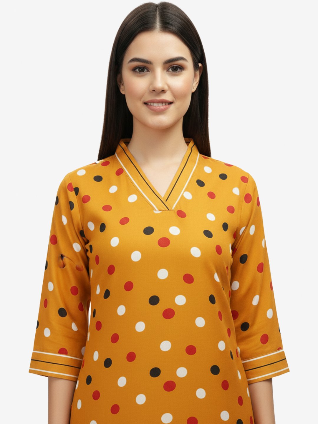| Neckline | Round neck with V-slit for a flattering look |