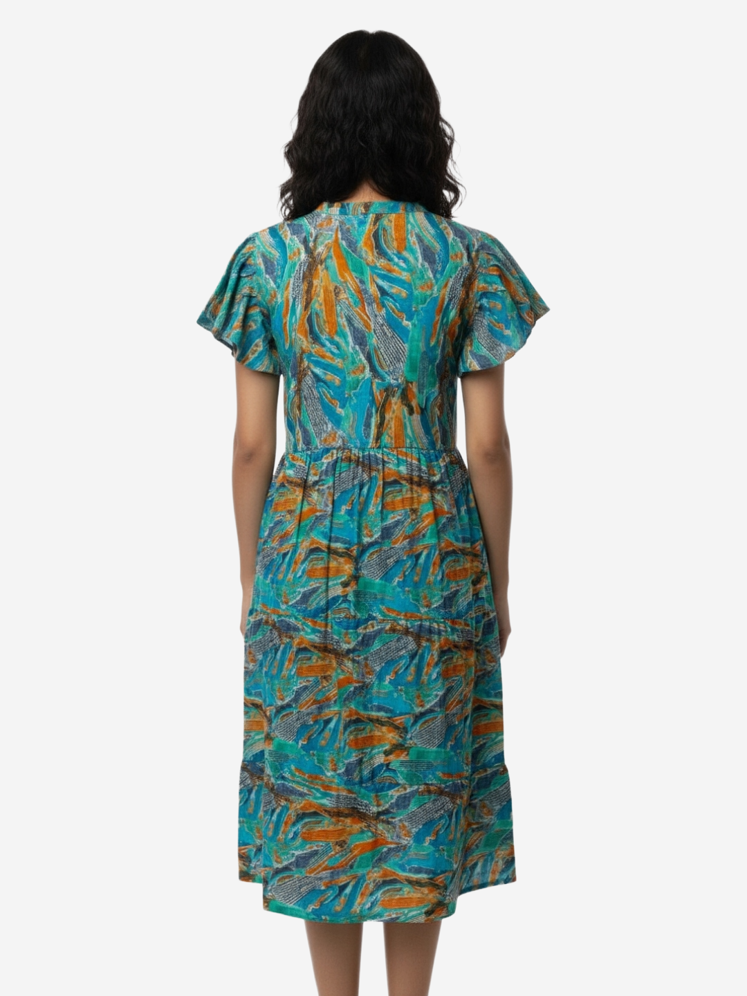 ₹999.00Original price was: ₹999.00.₹450.00Current price is: ₹450.00.Title Abstract Print Flutter Sleeve Midi Dress Material Lightweight Fabric Color Turquoise, Orange, Blue Sleeves Flutter Sleeves Length Midi -