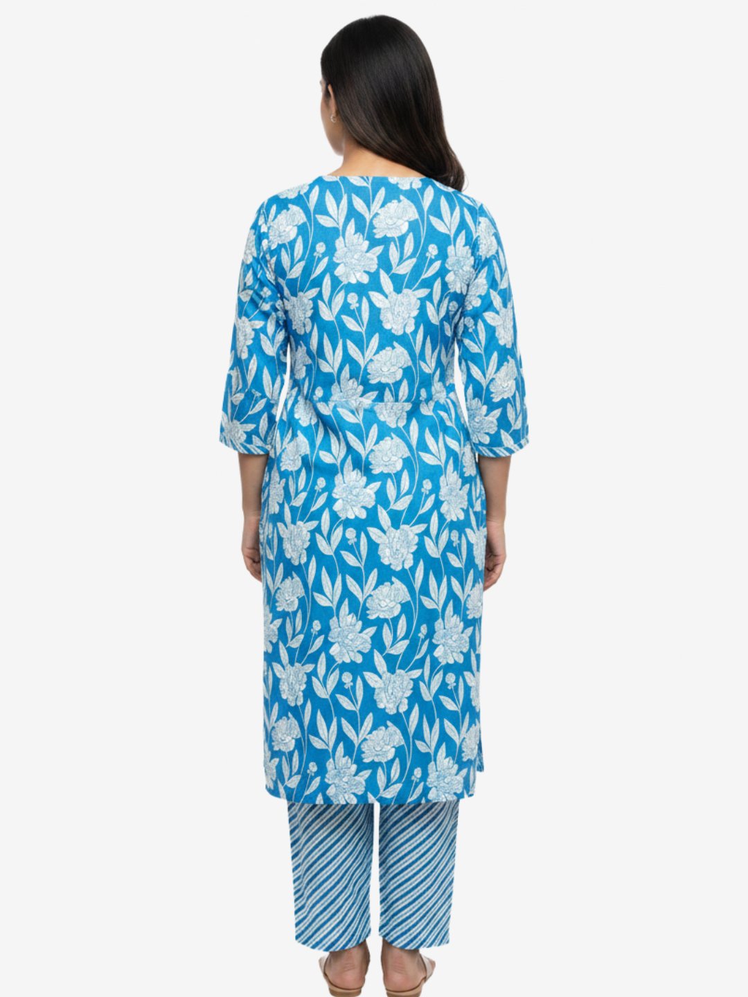 ₹1,499.00Original price was: ₹1,499.00.₹699.00Current price is: ₹699.00.Select optionsColor Blue with White Floral Print Fabric Breathable Cotton Neck Round Neck with V-Cut Sleeves 3/4th Sleeves Kurta Length Knee-Length Bottom Type Straight Pants with Striped Pattern Pattern Floral Print with Striped Yoke & Pants Occasion Daily Wear, Office, Casual Outings Care Machine Wash Cold, Gentle Cycle -