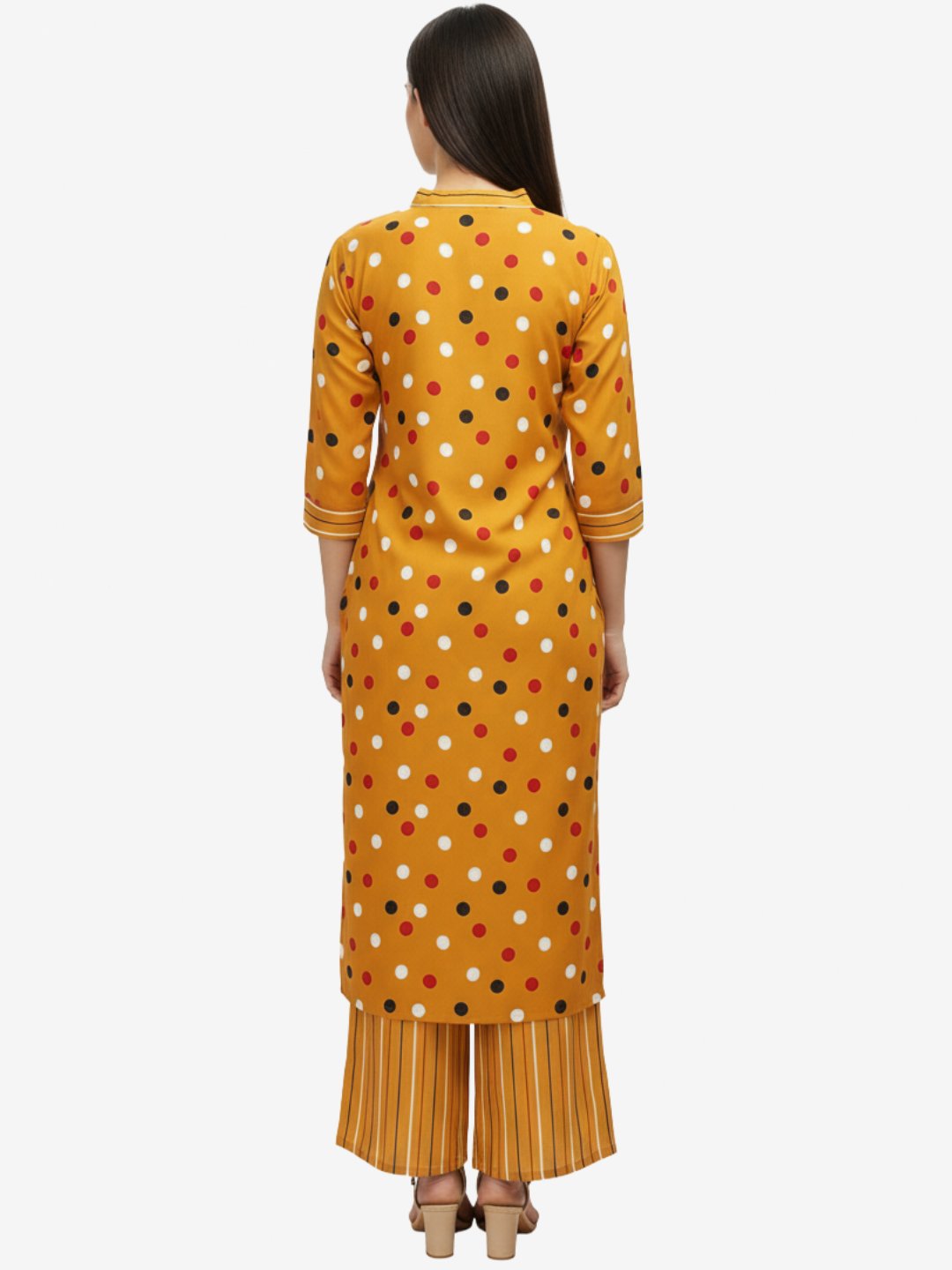 Yellow Rayon Polka Dot Print Kurta & Palazzo Set