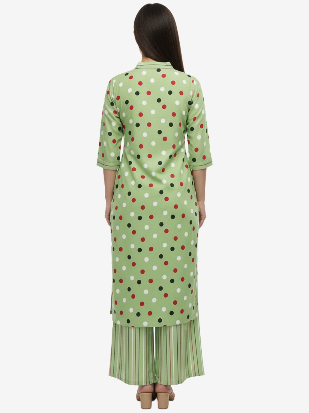 Green Rayon Polka Dot Print Kurta & Palazzo Set